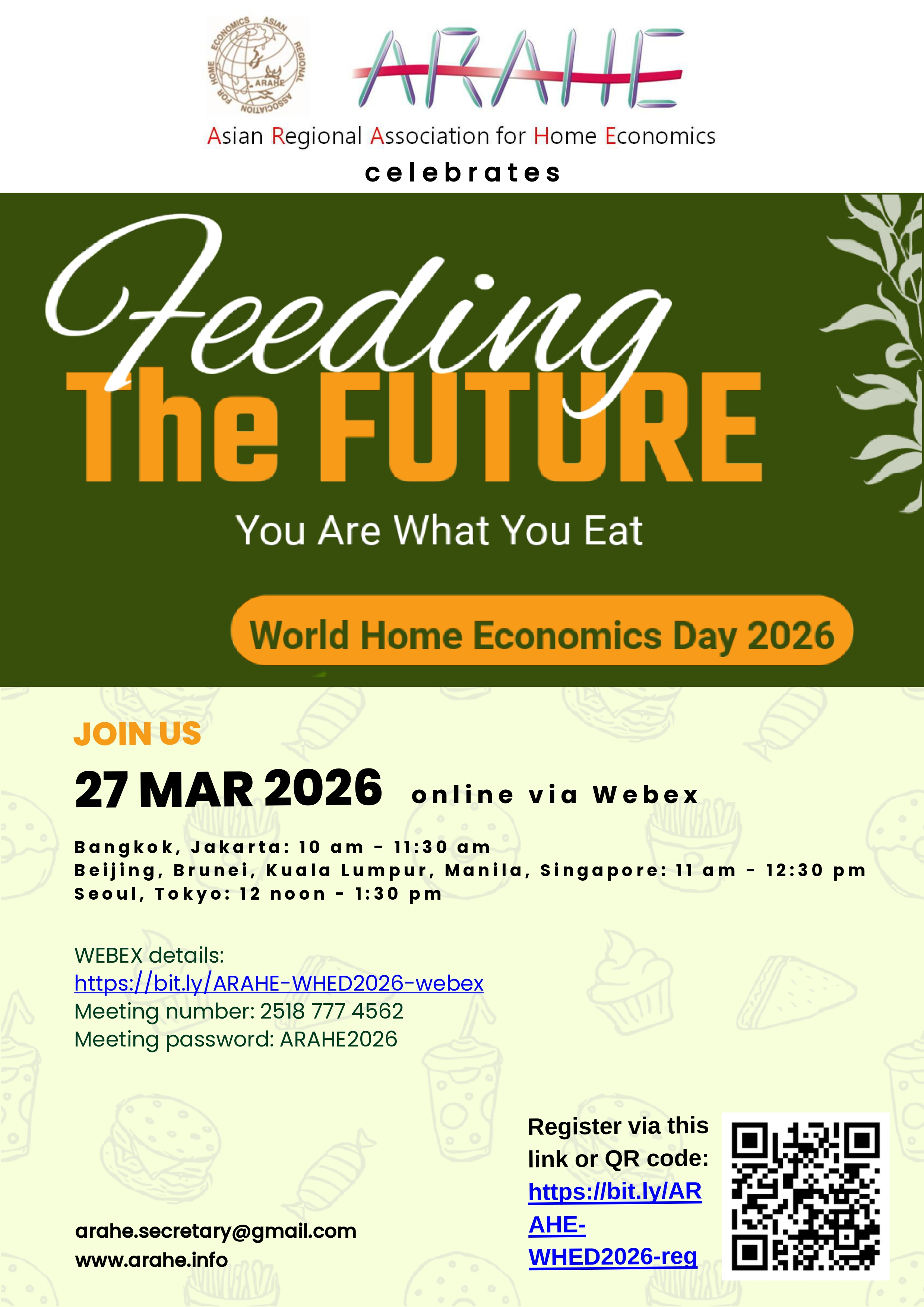 World Home Economics Day 2026 in Asia will be held on 27 March 2026.This year's theme is "Feeding the Future".